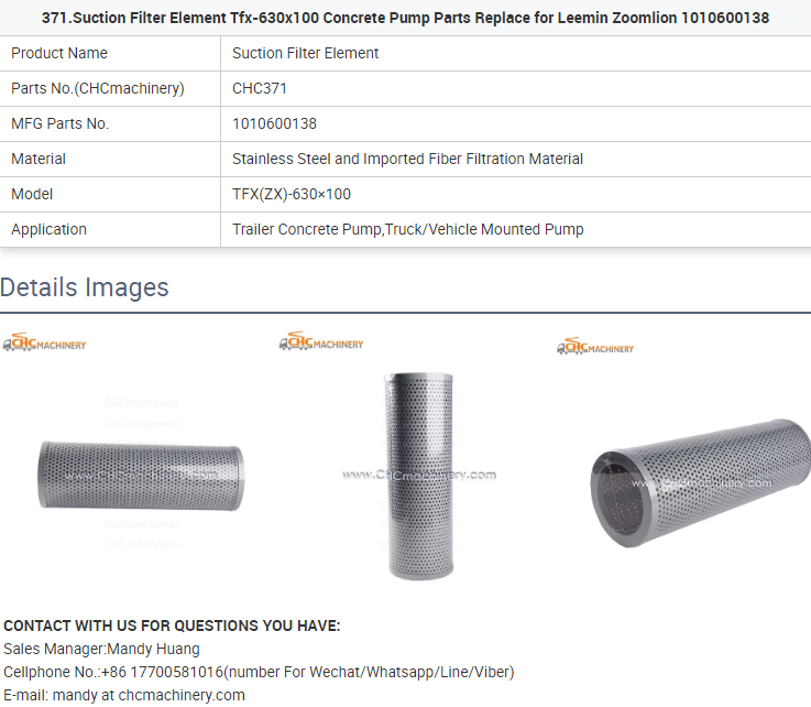 - 371.Suction Filter Element Tfx-630x100 Concrete Pump Parts Replace for Leemin Zoomlion 1010600138