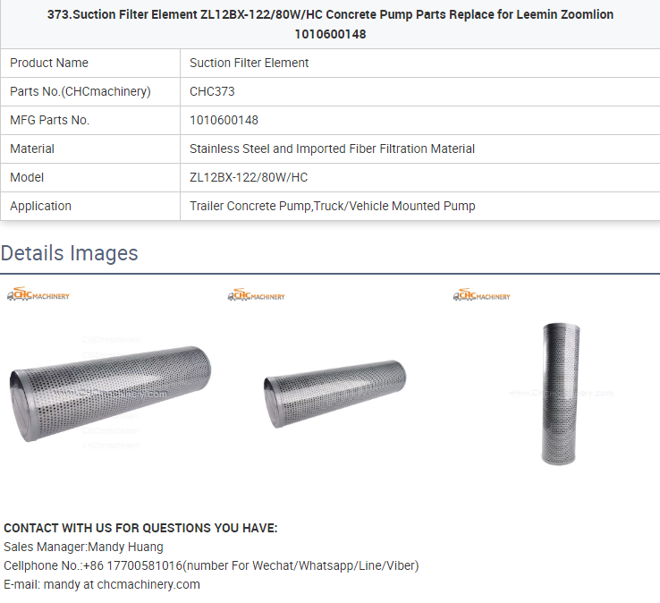 - 373.Suction Filter Element ZL12BX-122/80W/HC Concrete Pump Parts Replace for Leemin Zoomlion 1010600148