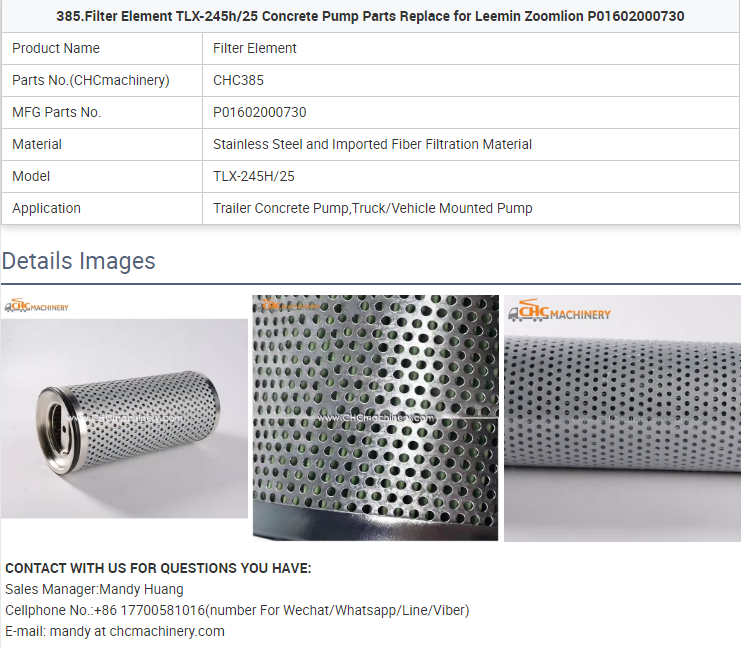 - 385.Filter Element TLX-245h/25 Concrete Pump Parts Replace for Leemin Zoomlion P01602000730