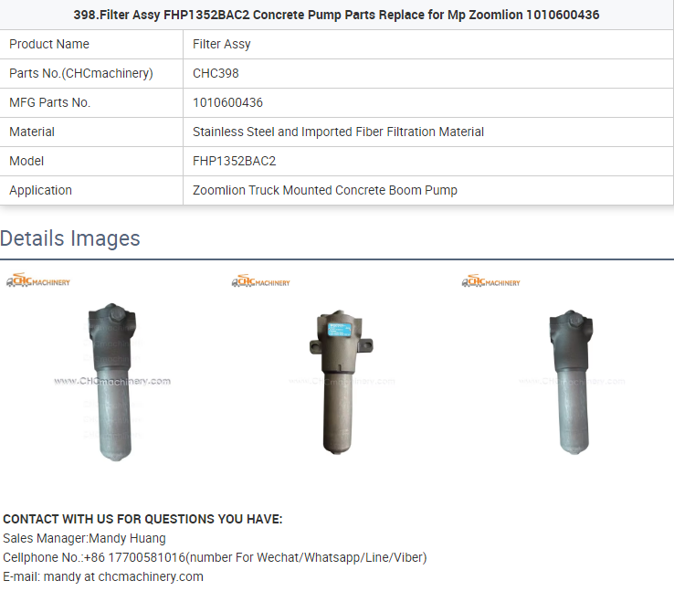 - 398.Filter Assy FHP1352BAC2 Concrete Pump Parts Replace for Mp Zoomlion 1010600436