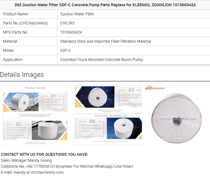 - 393.Suction Water Filter SDF-C Concrete Pump Parts Replace for KLEENOIL ZOOMLION 1010600424