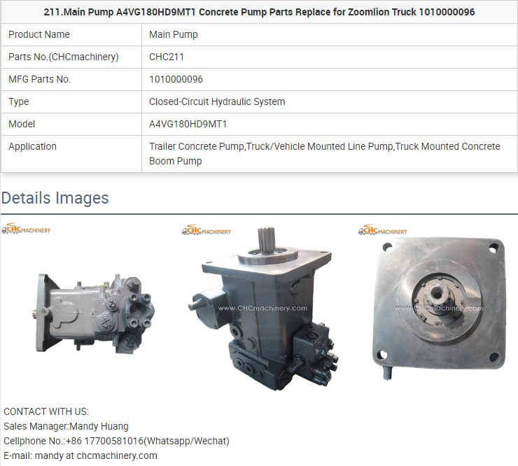 - 211.Main Pump A4VG180HD9MT1 Concrete Pump Parts Replace for Zoomlion Truck 1010000096