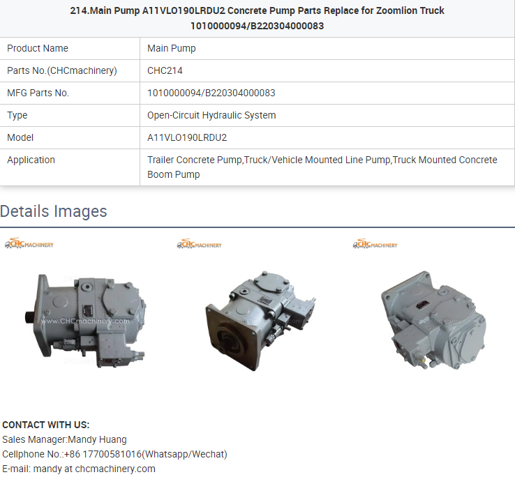- 214.Main Pump A11VLO190LRDU2 Concrete Pump Parts Replace for Zoomlion Truck 1010000094/B220304000083