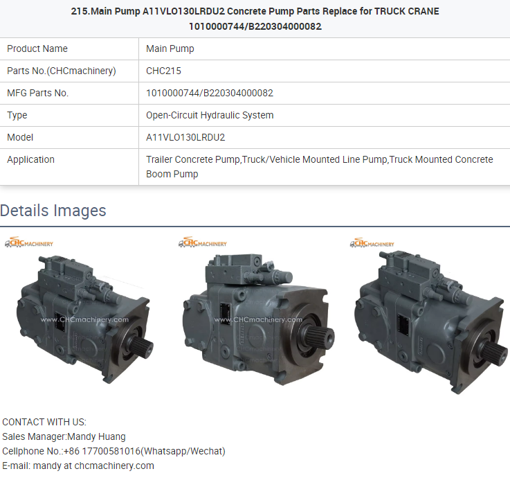 - 215.Main Pump A11VLO130LRDU2 Concrete Pump Parts Replace for TRUCK CRANE 1010000744/B220304000082