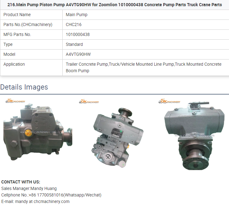 - 216.Main Pump Piston Pump A4VTG90HW for Zoomlion 1010000438 Concrete Pump Parts Truck Crane Parts