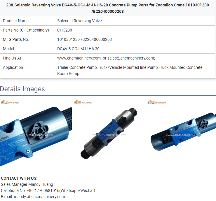 - 238.Solenoid Reversing Valve DG4V-5-OCJ-M-U-H6-20 Concrete Pump Parts for Zoomlion Crane 1010301230 /B220400000263