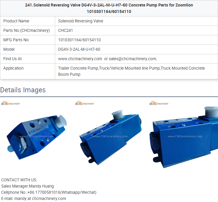 - 241.Solenoid Reversing Valve DG4V-3-2AL-M-U-H7-60 Concrete Pump Parts for Zoomlion 1010301164/60154110