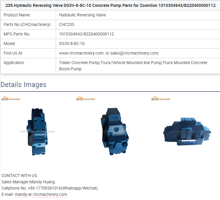 - 235.Hydraulic Reversing Valve DG3V-8-8C-10 Concrete Pump Parts for Zoomlion 1010304943/B220400000112