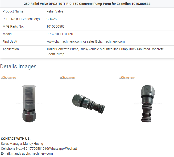 - 250.Relief Valve DPS2-10-T-F-0-160 Concrete Pump Parts for Zoomlion 1010300583