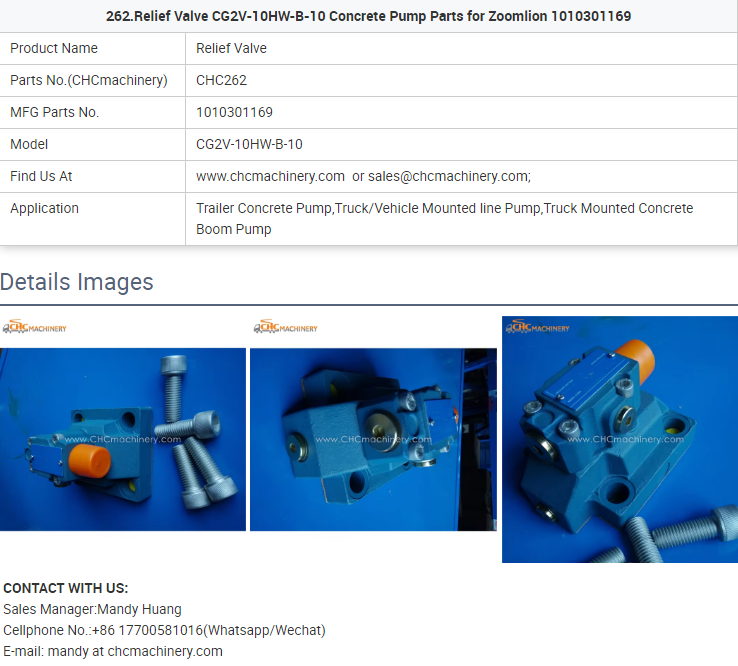 - 262.Relief Valve CG2V-10HW-B-10 Concrete Pump Parts for Zoomlion 1010301169