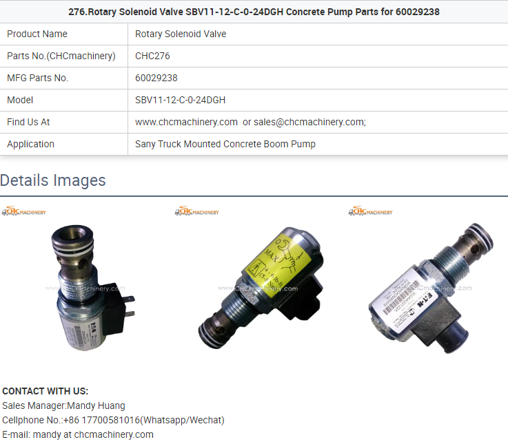 - 276.Rotary Solenoid Valve SBV11-12-C-0-24DGH Concrete Pump Parts for 60029238
