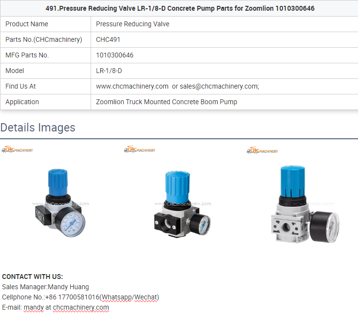 - 491.Pressure Reducing Valve LR-1/8-D Concrete Pump Parts for Zoomlion 1010300646