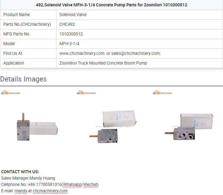 - 492.Solenoid Valve MFH-3-1/4 Concrete Pump Parts for Zoomlion 1010300512