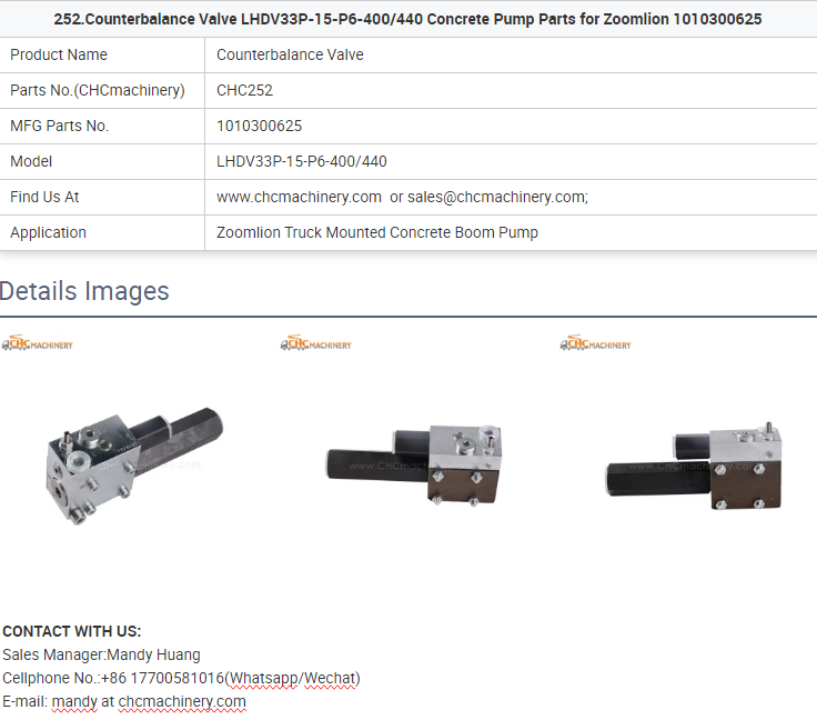 - 252.Counterbalance Valve LHDV33P-15-P6-400/440 Concrete Pump Parts for Zoomlion 1010300625