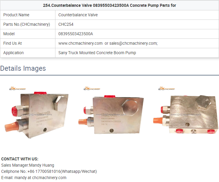 - 254.Counterbalance Valve 08395503423500A Concrete Pump Parts for