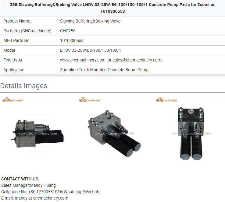 - 256.Slewing Buffering&Braking Valve LHDV 33-25W-B6-130/130-100/1 Concrete Pump Parts for Zoomlion 1010300553