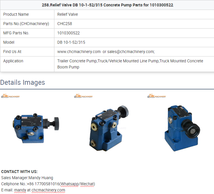 - 258.Relief Valve DB 10-1-52/315 Concrete Pump Parts for 1010300522