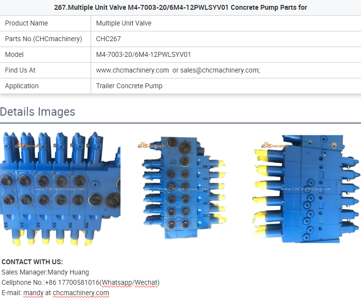- 267.Multiple Unit Valve M4-7003-20/6M4-12PWLSYV01 Concrete Pump Parts for