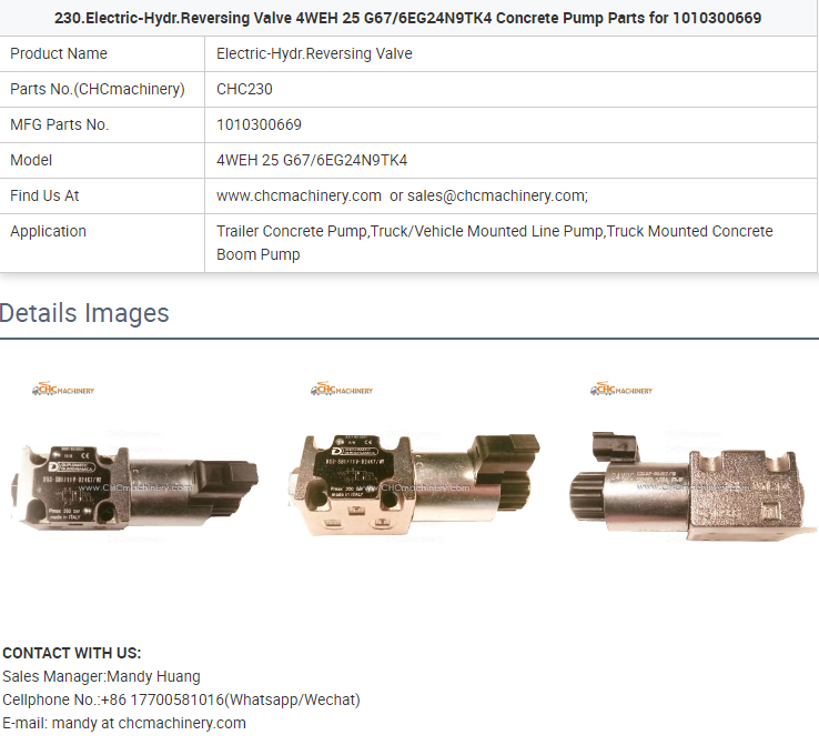 - 230.Electric-Hydr.Reversing Valve 4WEH 25 G67/6EG24N9TK4 Concrete Pump Parts for 1010300669