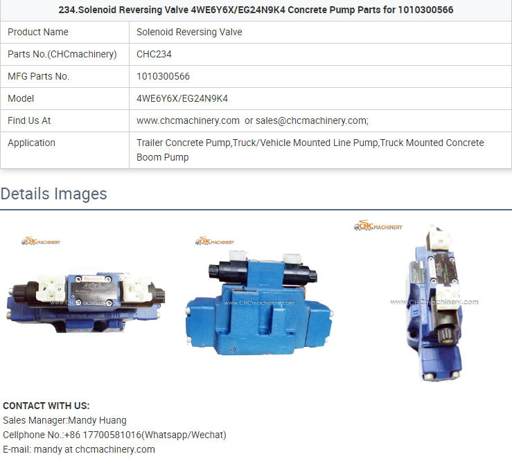 - 234.Solenoid Reversing Valve 4WE6Y6X/EG24N9K4 Concrete Pump Parts for 1010300566