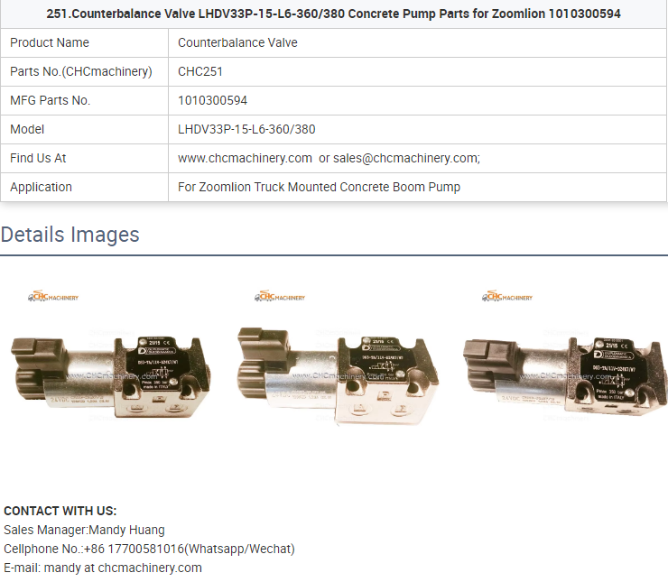 - 251.Counterbalance Valve LHDV33P-15-L6-360/380 Concrete Pump Parts for Zoomlion 1010300594