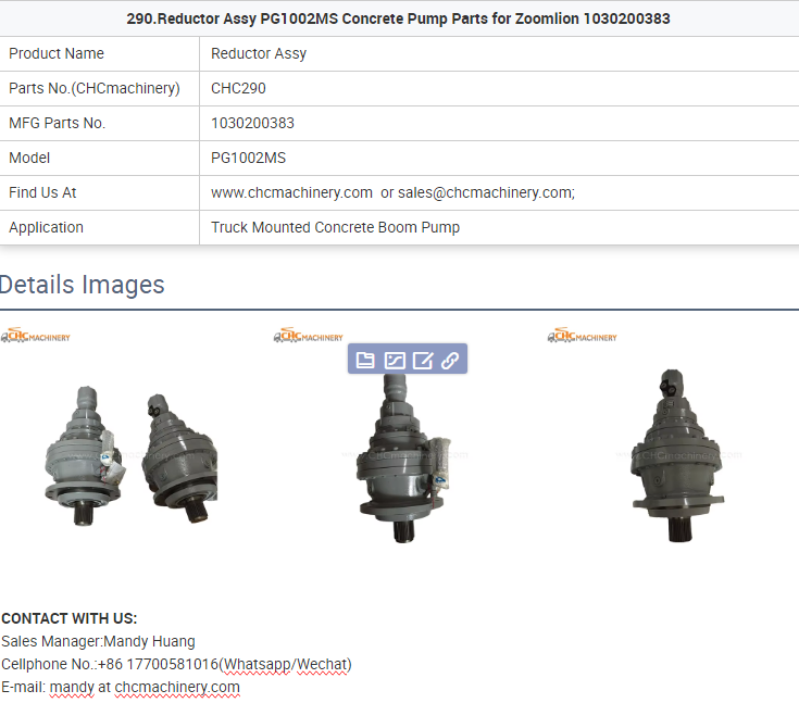 - 290.Reductor Assy PG1002MS Concrete Pump Parts for Zoomlion 1030200383