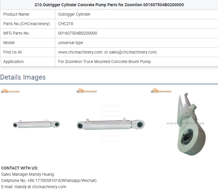 - 210.Outrigger Cylinder Concrete Pump Parts for Zoomlion 001607504B0200000