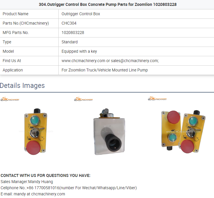 - 304.Outrigger Control Box Concrete Pump Parts for Zoomlion 1020803228