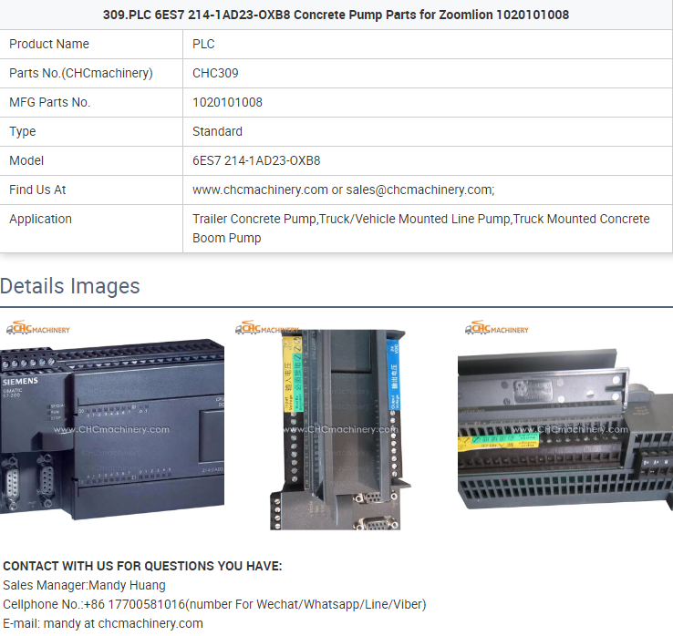 - 309.PLC 6ES7 214-1AD23-OXB8 Concrete Pump Parts for Zoomlion 1020101008
