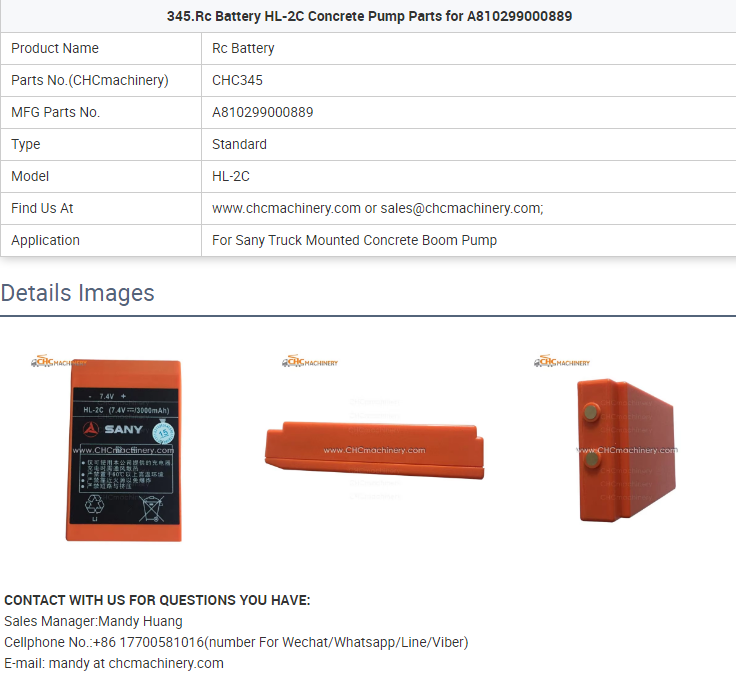 - 345.Rc Battery HL-2C Concrete Pump Parts for A810299000889