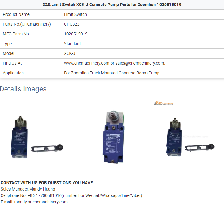 - 323.Limit Switch XCK-J Concrete Pump Parts for Zoomlion 1020515019