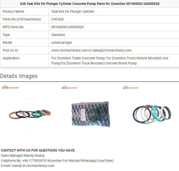 - 426.Seal Kits for Plunger Cylinder Concrete Pump Parts for Zoomlion 001600001A0000029