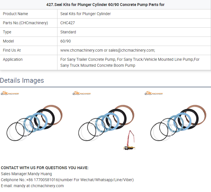 - 427.Seal Kits for Plunger Cylinder 60/90 Concrete Pump Parts for