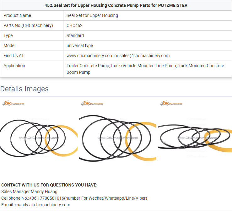 - 452.Seal Set for Upper Housing Concrete Pump Parts for PUTZMEISTER