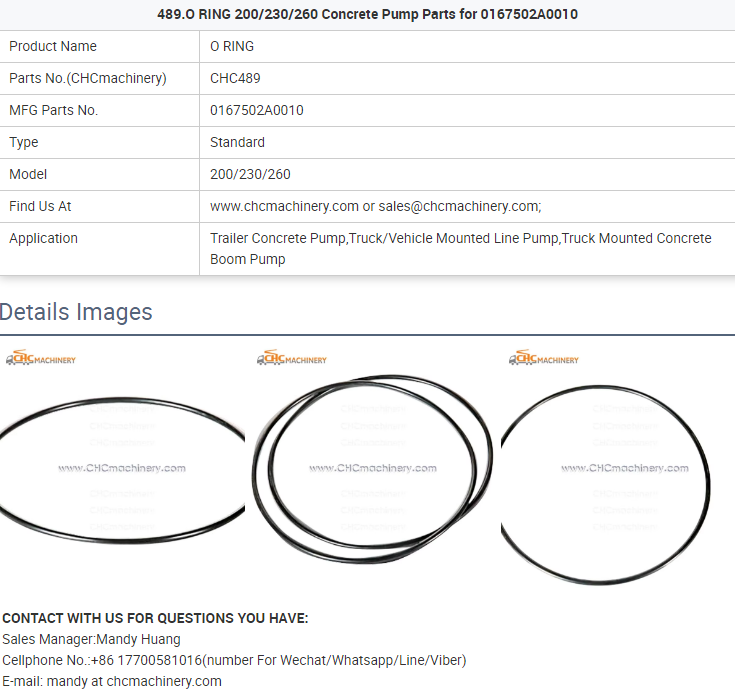 - 489.O RING 200/230/260 Concrete Pump Parts for 0167502A0010