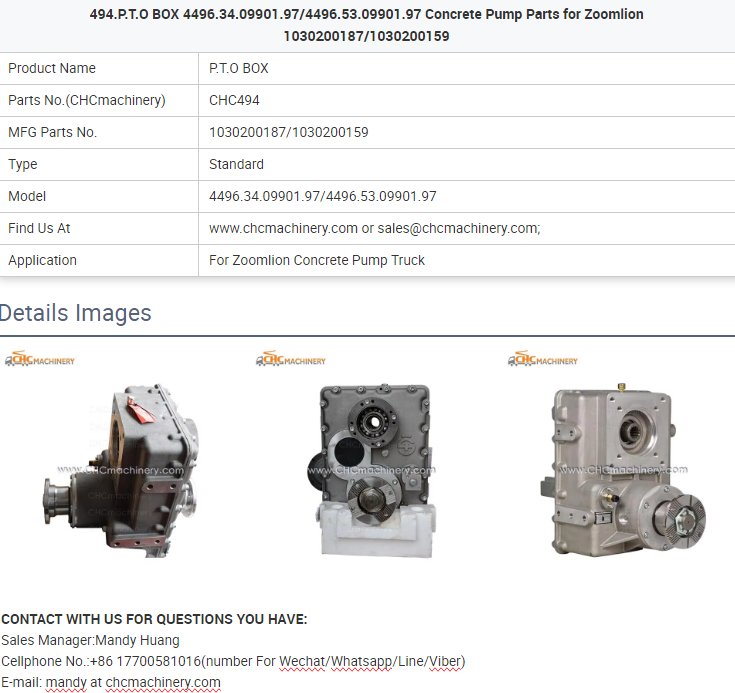 - 494.P.T.O BOX 4496.34.09901.97/4496.53.09901.97 Concrete Pump Parts for Zoomlion 1030200187/1030200159