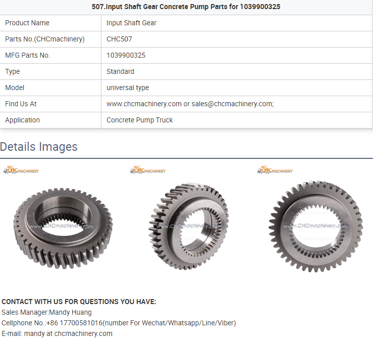 - 507.Input Shaft Gear Concrete Pump Parts for 1039900325
