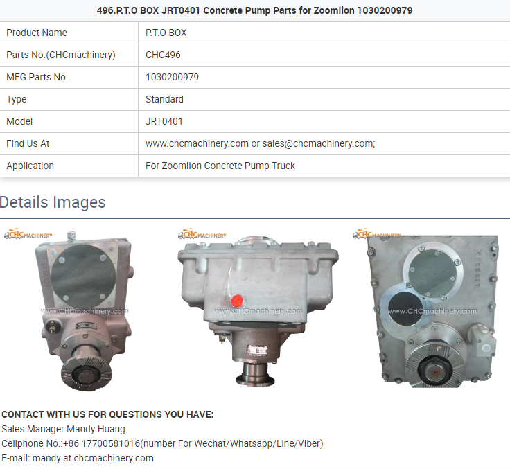 - 496.P.T.O BOX JRT0401 Concrete Pump Parts for Zoomlion 1030200979