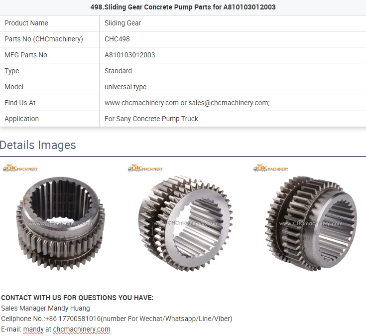 - 498.Sliding Gear Concrete Pump Parts for A810103012003
