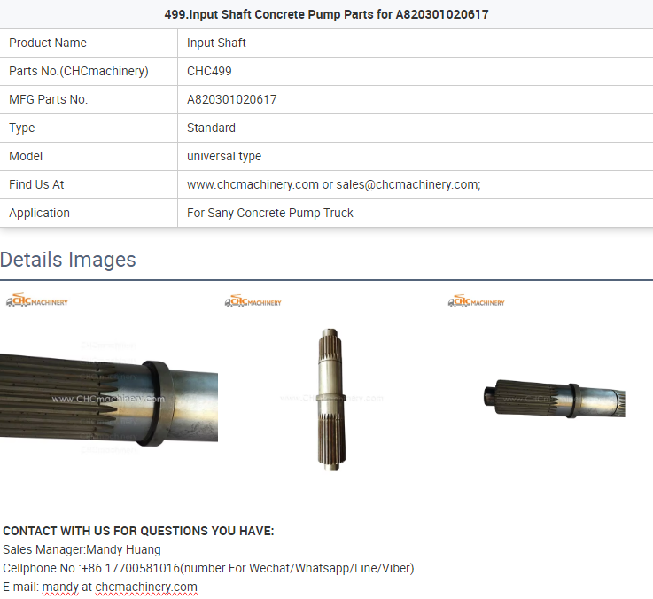 - 499.Input Shaft Concrete Pump Parts for A820301020617