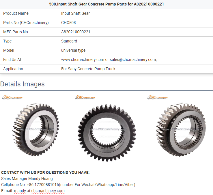 - 508.Input Shaft Gear Concrete Pump Parts for A820210000221