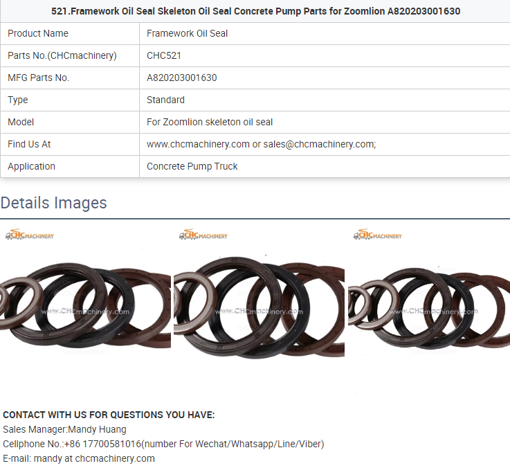 - 521.Framework Oil Seal Skeleton Oil Seal Concrete Pump Parts for Zoomlion A820203001630