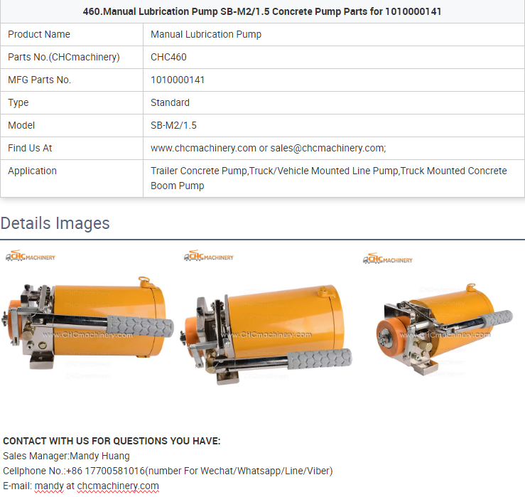 - 460.Manual Lubrication Pump SB-M2/1.5 Concrete Pump Parts for 1010000141