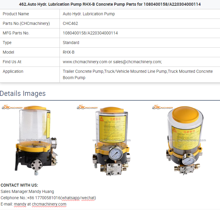 - 462.Auto Hydr. Lubrication Pump RHX-B Concrete Pump Parts for 1080400158/A220304000114