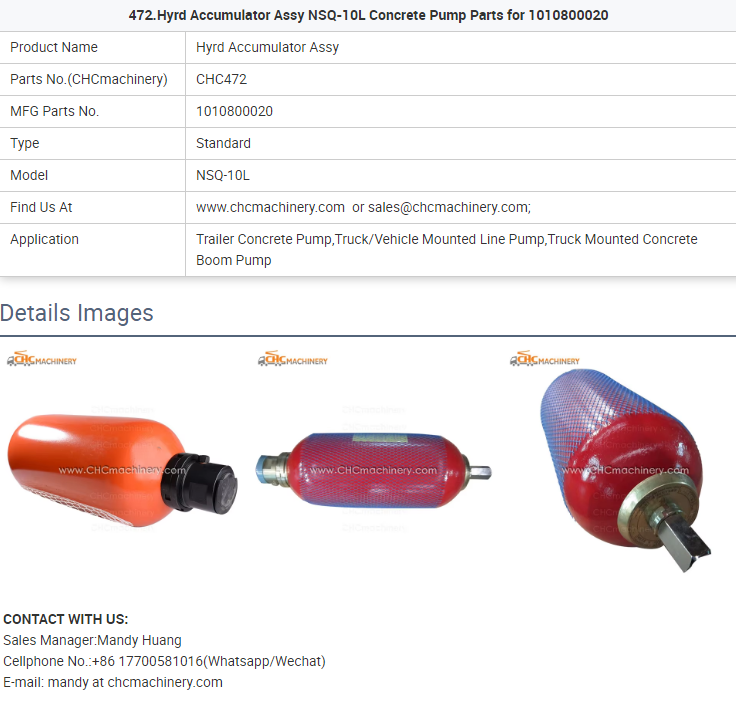 - 472.Hyrd Accumulator Assy NSQ-10L Concrete Pump Parts for 1010800020