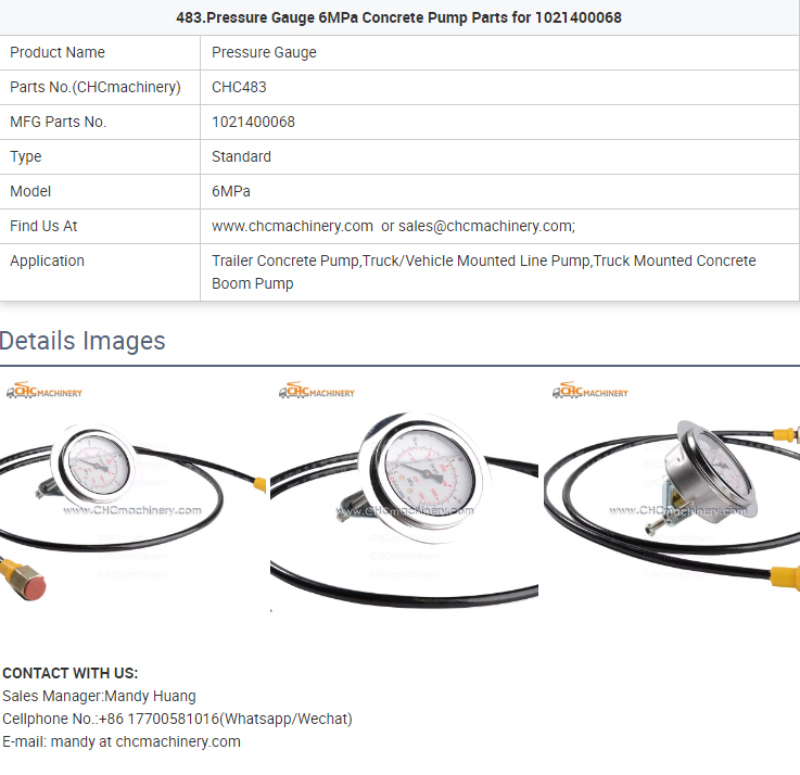 - 483.Pressure Gauge 6MPa Concrete Pump Parts for 1021400068