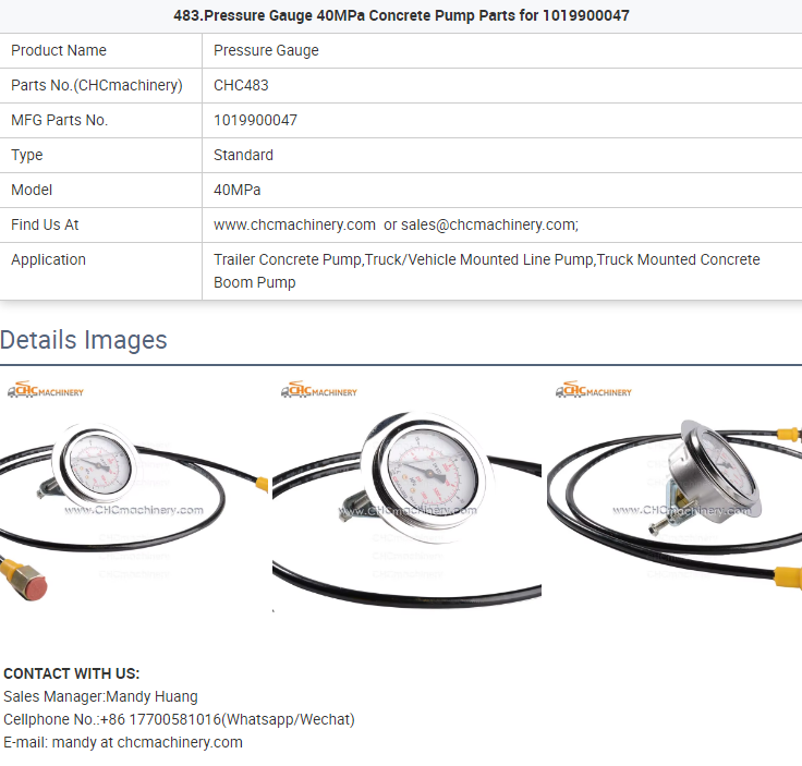 - 483.Pressure Gauge 40MPa Concrete Pump Parts for 1019900047
