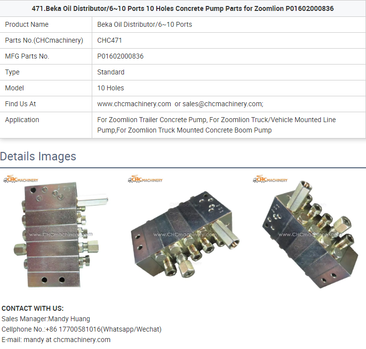 - 471.Beka Oil Distributor/6~10 Ports 10 Holes Concrete Pump Parts for Zoomlion P01602000836