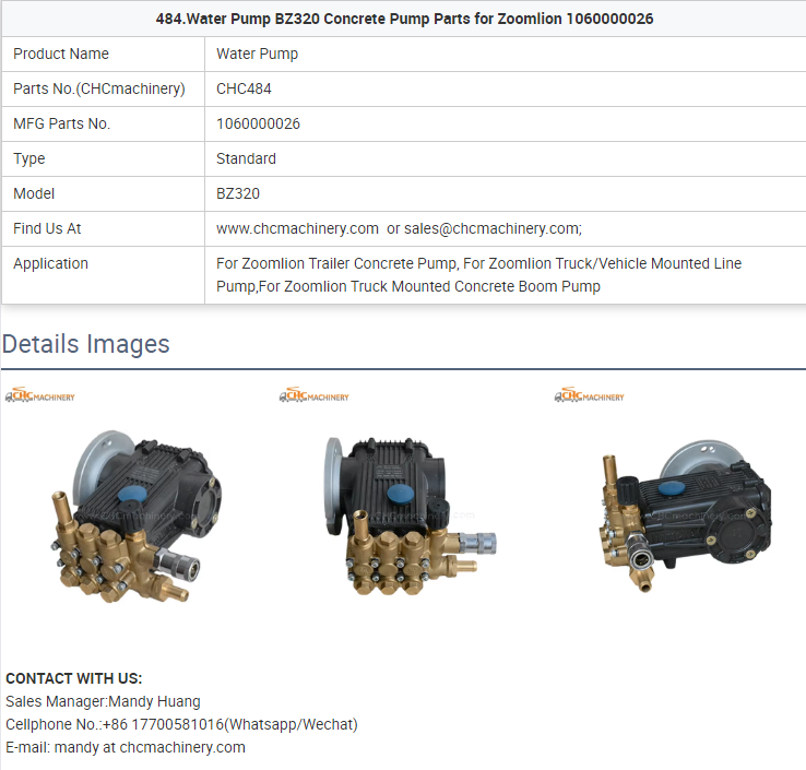 - 484.Water Pump BZ320 Concrete Pump Parts for Zoomlion 1060000026
