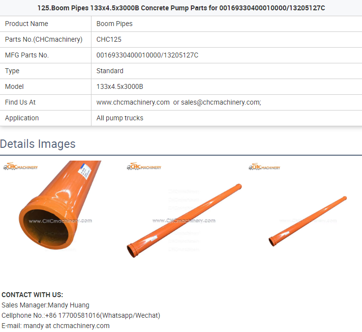 - 125.Boom Pipes 133x4.5x3000B Concrete Pump Parts for 00169330400010000/13205127C
